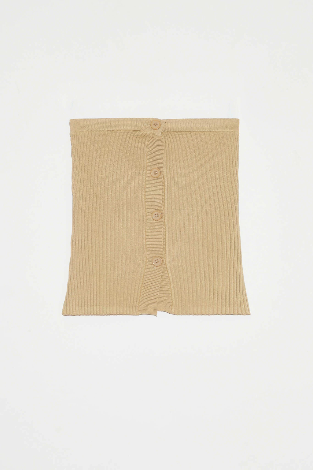 Un básico distinto: top tejido elastizado, con textura acanalada y botones delanteros. Ajuste cómodo gracias a su punto flexible, pensado para adaptarse a distintos cuerpos (talle único).